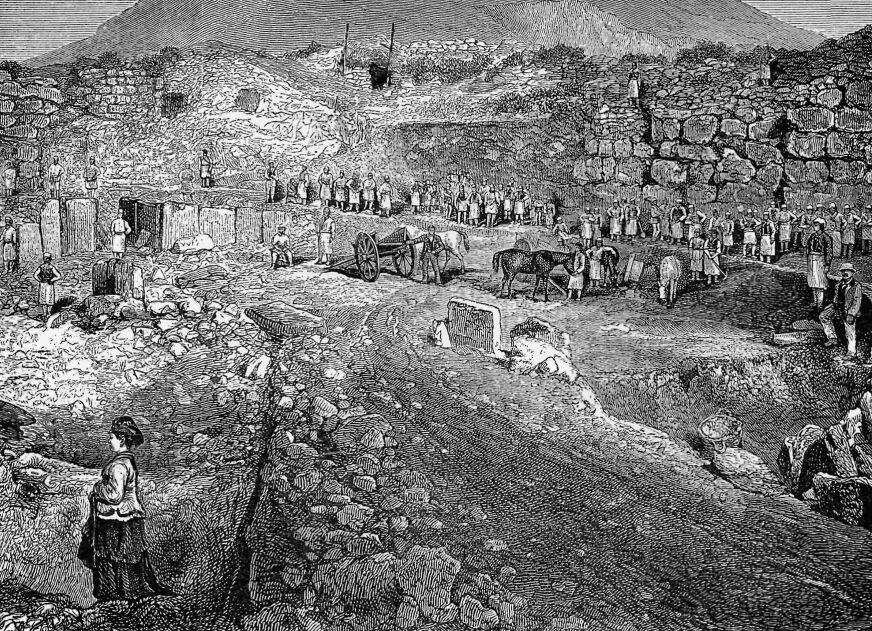 So they dug on. The men stood about watching. Every now and then they shouted out, when some wonderful thing was uncovered, and Schliemann would stop work and cry,