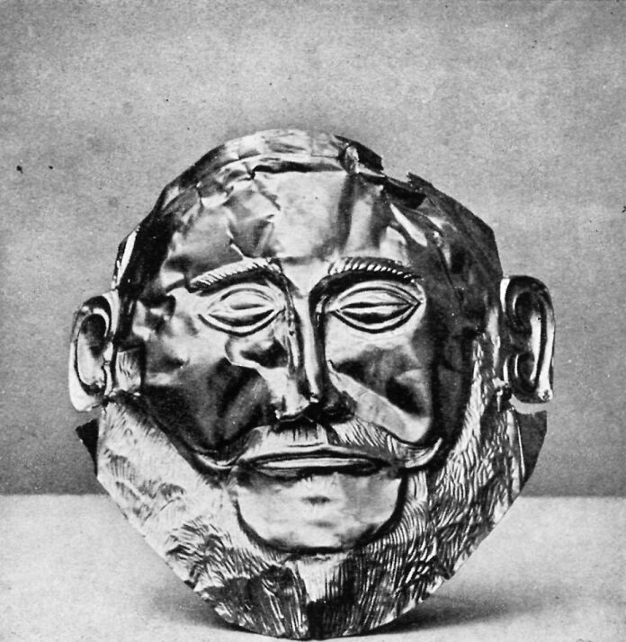 This mask was still on the face of the dead king. The artist tried to make the mask look just as the great king himself had looked, but this was very hard to do.