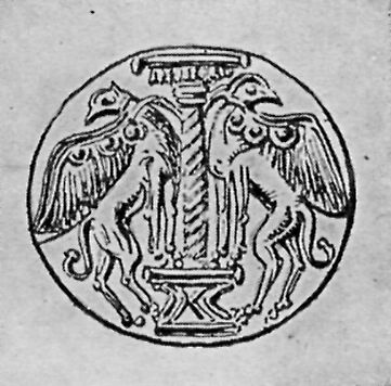 Early men made many pictures much like this—a pillar guarded by an animal on each side.