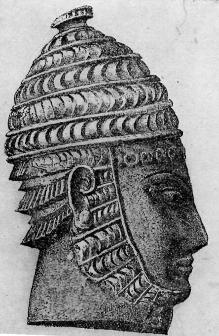 It shows the kind of helmet used in Mycenae. Do you think the button at the top may have had a socket for a horse hair plume?
