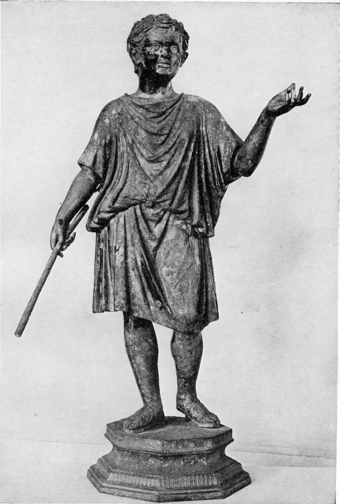 This picture and the one before it are not pictures of things found at Olympia. They are two of the most beautiful statues of Greek athletes, and we give them to remind you of the sort of people who came to the games at Olympia.