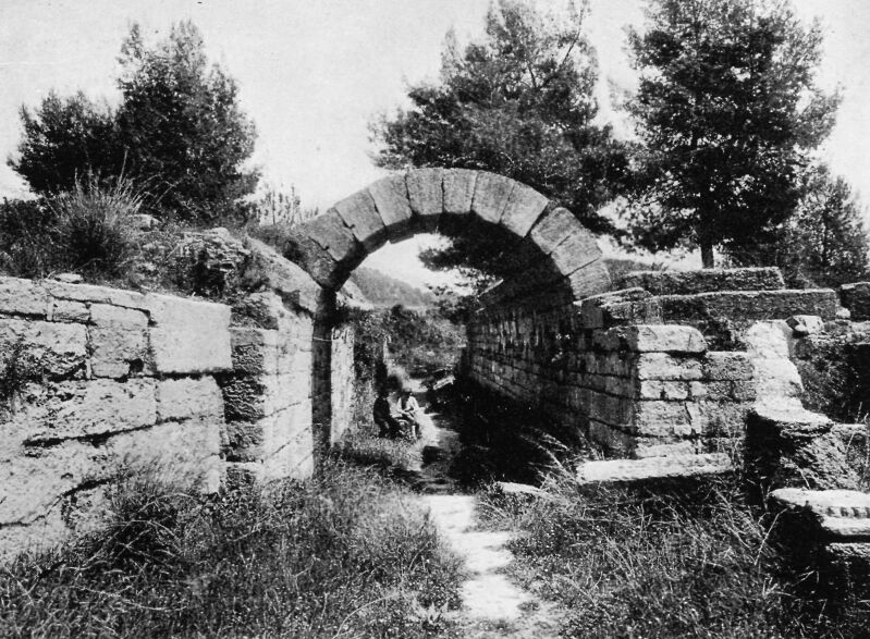 This was not the gate where Charmides entered. This entrance was reserved for the judges, the competitors, and the heralds. Inside there were seats for forty-five thousand people. On one side the hill made a natural slope for seats. But on the other sides a ridge of earth had to be built up. The track was about two hundred yards long. Only the two ends have been excavated. The rest still lies deep under the sand.