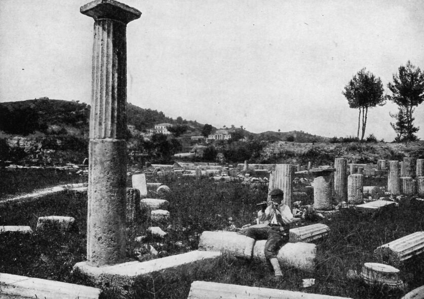 After five years the work was finished. Now again hundreds of visitors journey to Olympia every year. They see no gleaming roofs and high-lifted statues and joyful games. They walk among sad ruins. But they can tread the gymnasium floor where Creon and many another victor wrestled. They can enter the gate of the grass-grown stadion. They can see the fallen columns of the temple of Zeus. In the museum they can see the statues of its pediments and, at the end of the long hall, they see Victory stepping toward them. They can wander on the banks of the Kladeos and the Alpheios. They can climb Mount Kronion and see the whole little plain and imagine it gay with tents and moving people.