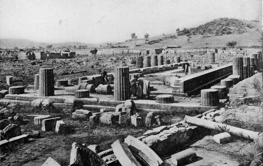 This shows the ruins of the temple where Charmides saw the statue of