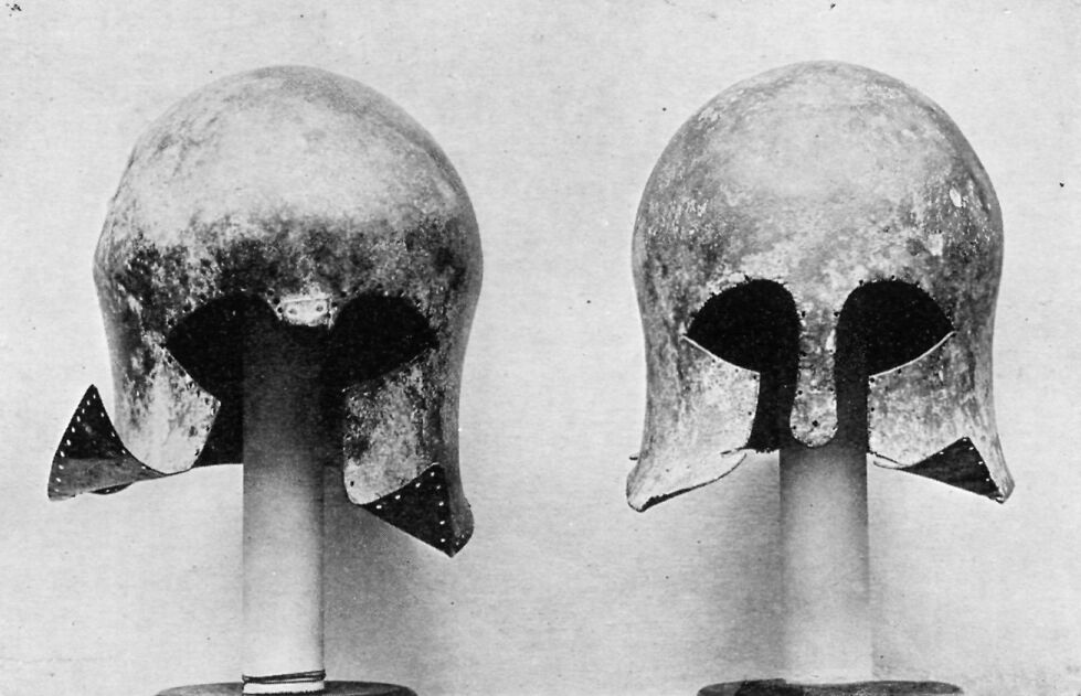 It shows the kind of helmet used in Mycenae. Do you think the button at the top may have had a socket for a horse hair plume?