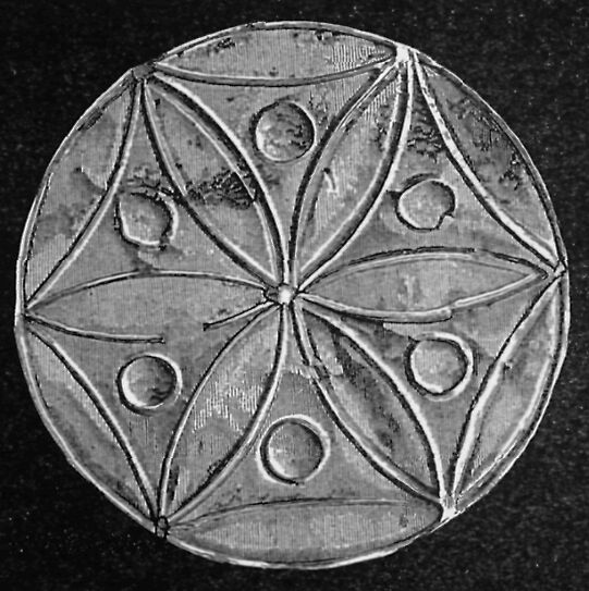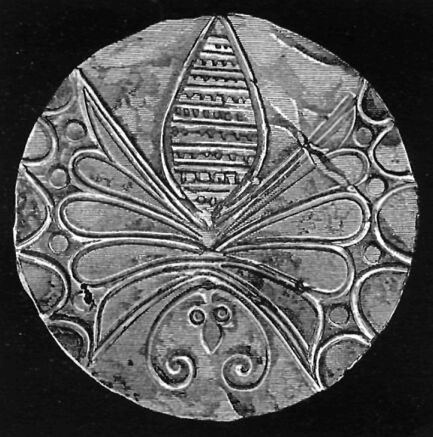 At Mycenae were found seven hundred and one large round plates of gold, decorated with cuttlefish, flowers, butterflies, and other designs.