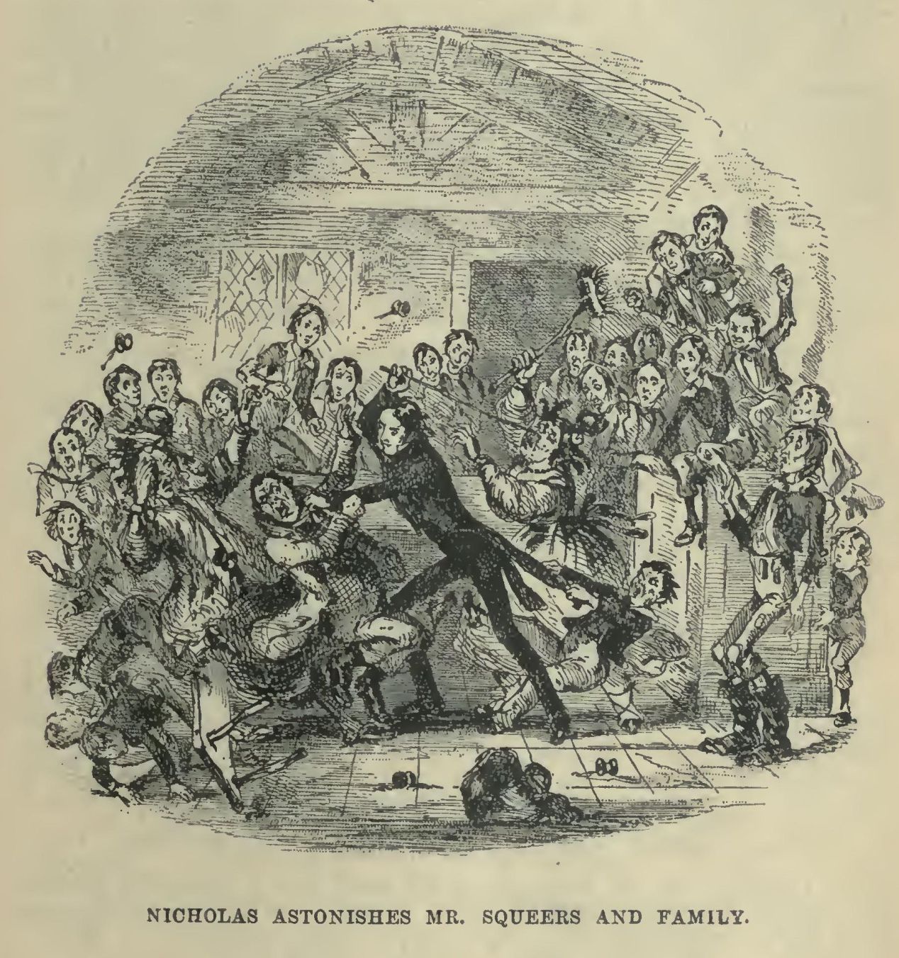 The news of Mr. Squeers’s downfall had reached Dotheboys; that was quite clear. To all appearance, it had very recently become known to the young gentlemen; for the rebellion had just broken out.