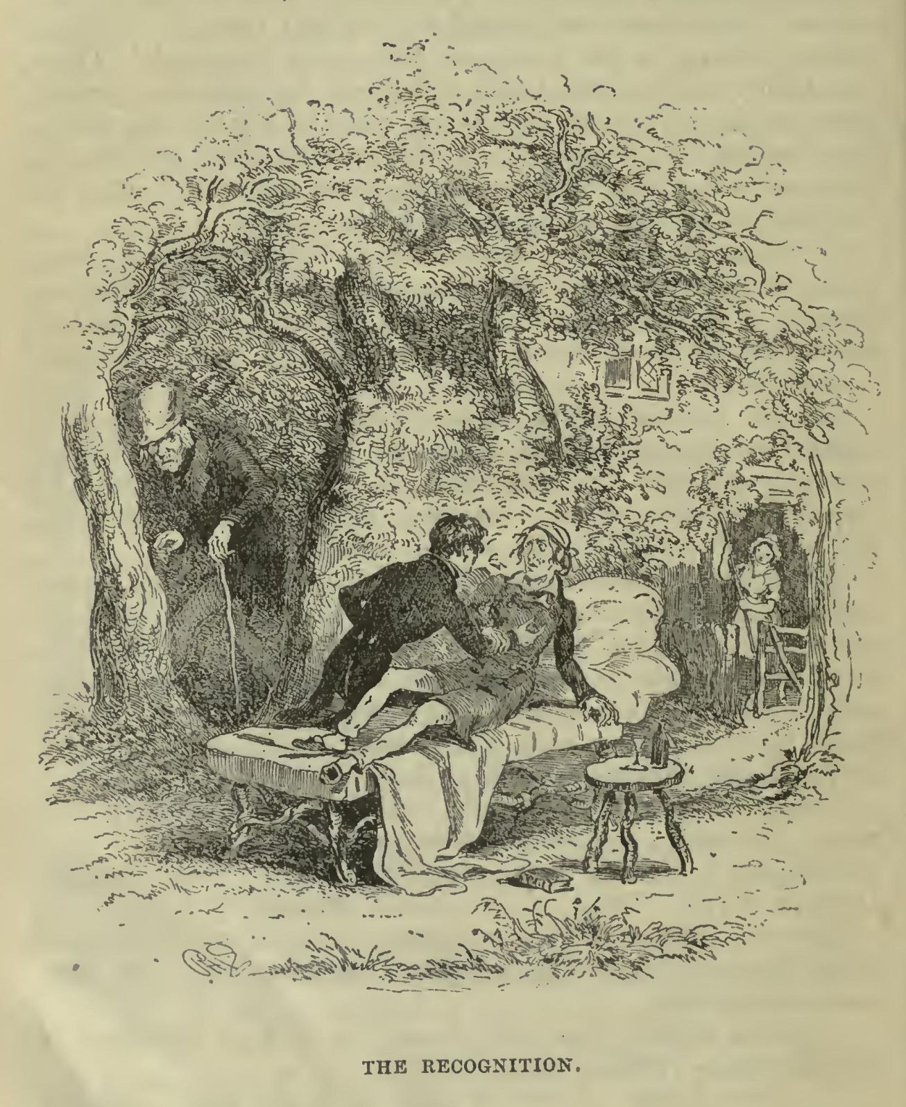 There was one grey-haired, quiet, harmless gentleman, who, winter and summer, lived in a little cottage hard by Nicholas’s house, and, when he was not there, assumed the superintendence of affairs. His chief pleasure and delight was in the children, with whom he was a child himself, and master of the revels. The little people could do nothing without dear Newman Noggs.