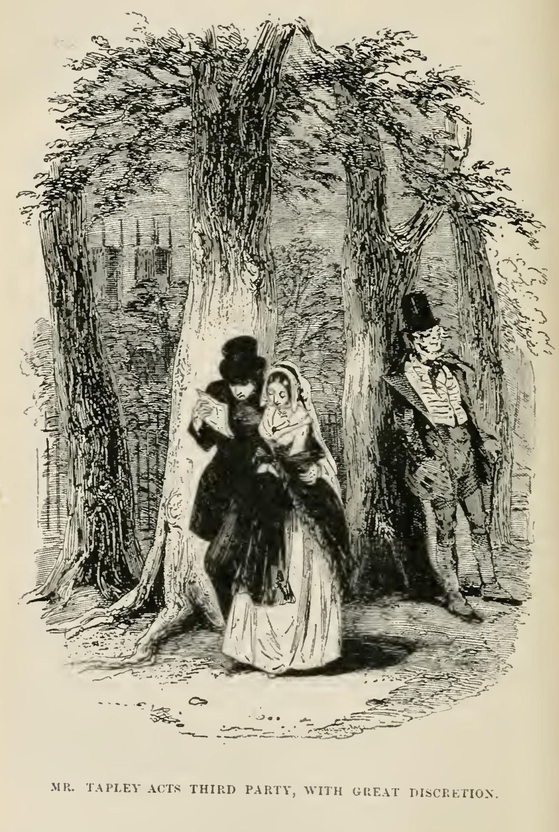 ‘Mrs Spottletoe is at least more easily seen than the bridegroom, ma’am,’ returned that lady’s husband. ‘That is, unless he has confined his attentions to any particular part or branch of this family, which would be quite in keeping with its usual proceedings.’