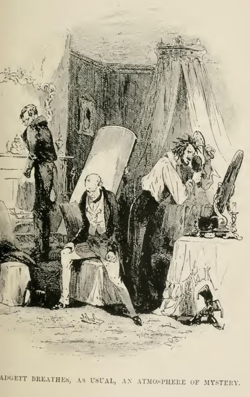 ‘Upon my soul!’ cried Spottletoe. ‘He begins well! Upon my life and honour this young man begins well! But I should very much like to know how it is that every one who comes into contact with this family is guilty of some gross insult to it. Death! Not arrived yet. Not here to receive us!’