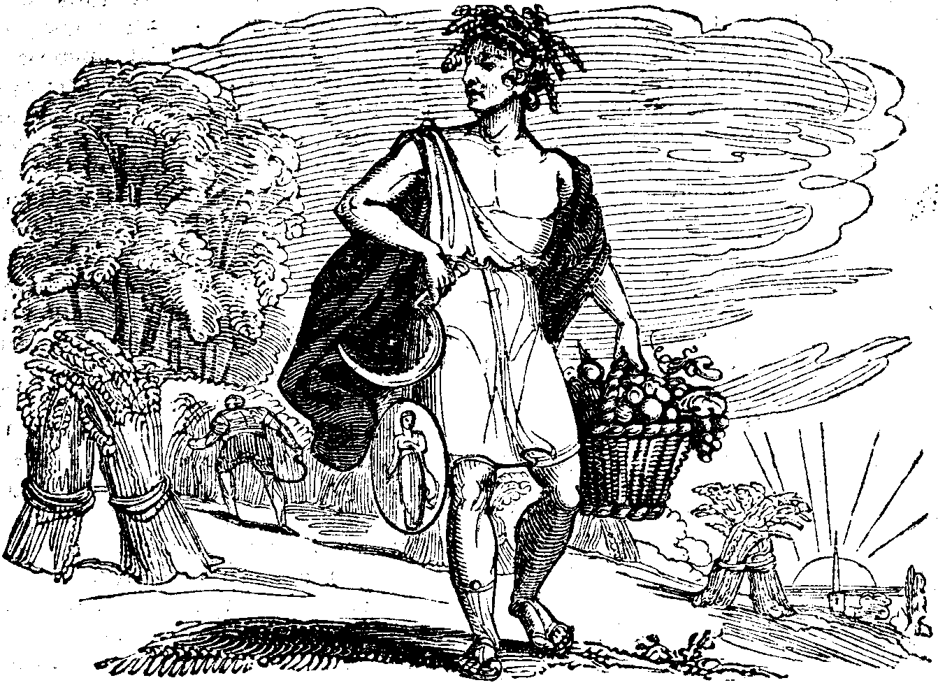The lilies are wet with the dew—the sunbeams with a kiss gently touch the flower of the roses.—O the garden is rich of scent—is bright of hue.—Arise Feronia and weave the garland even now to braid thy ravenlike hair, lest at mid-day the sun should spoil the flowers.—In the sky there is a little cloud, gentle whisperings come with the gale—they tell of rain or snow.—Arise Feronia and carefully weave the garland to bind up thy hair, lest the threatening storm should come.