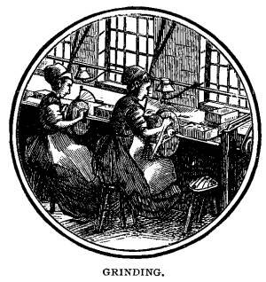 Now, in this statement, there are some dales given, but others are omitted, and that is a very unfortunate circumstance. Levesley told the writer of the article in the Sheffield Daily Telegraph that he made use of the fly press for working tools for shaping, bending, and slitting pens. If the writer had only given the date of this it would have been a valuable contribution toward a history of the invention. The claim of Levesley to having invented the process of grinding pens and teaching Gillott seems, to say the least, curious, because the latter was a Sheffield grinder, and the idea would certainly be quite as likely to occur to Gillott as Levesley. Besides, why did Levesley communicate the idea to Gillott in preference to Skinner, with whom he had business relations? The statement that Gillott had fifty girls employed when Levesley* called upon him on his next visit to Birmingham looks like a mistake. Fifty girls would grind on an average seven thousand gross of pens in a week, and as this correspondence appears to refer to the early part of Gillott's career, it is scarcely possible that such a number of pens were produced weekly at that period. Besides, as a matter of fact, boys were, in the first instance, employed to grind pens.