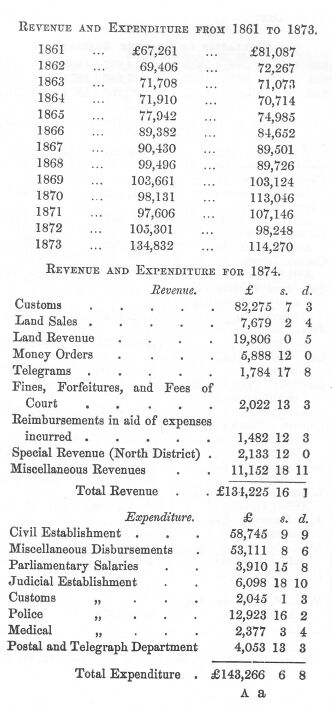 On the 30th September, 1874, there was a sum of 36,616 pounds 3 shillings 5 pence in the chest, and something like this sum will be at the disposal of the Legislature at their meeting, beyond current revenue.