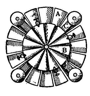 The ordinary latch and catch A are attached to the door in the usual manner. The latch is lifted with a stick of wood B, which is about 1 ft. long and 1 in. wide, and pivoted about two-thirds of the way from the top as shown. The latch A is connected to the stick B with a strong cord run through a staple to secure a right-angle pull between the pieces. A nail, C, keeps the stick B from falling over to the left. The piece of wood, D, is 6 or 8 in. long and attached to a bolt that runs through the door, the opposite end being fastened to the combination dial. Two kinds of dials are shown in Fig. 2. The piece D is fastened on the bolt an inch or two from the surface of the door to permit placing a spiral spring of medium strength in between as shown in Fig. 3. The opposite end of the bolt may be screwed into the dial, which can be made of wood, or an old safe dial will do. A nail is driven through the outer end of the piece D and the end cut off so that it will pass over the piece B when the dial is turned. When the dial is pulled out slightly and then turned toward the right, the nail will catch on the piece B and open the latch.