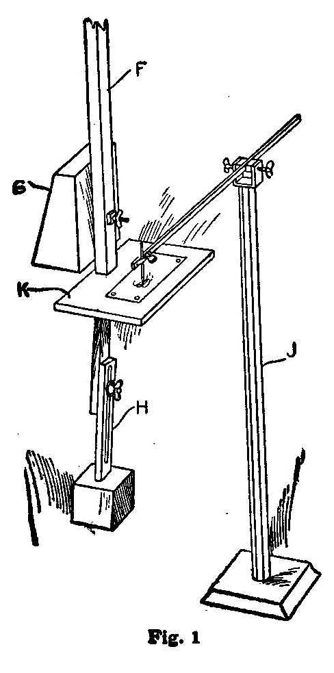 The upright rods binding the top and bottom plates are of steel rod about 1/8-in. in diameter, threaded into the top plate and passing through holes in the bottom plate with hexagonal brass nuts beneath.
