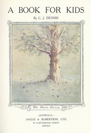 Project Gutenberg's A Book for Kids, by C. J. (Clarence Michael James) Dennis This eBook is for the use of anyone anywhere at no cost and with almost no restrictions whatsoever. You may copy it, give it away or re-use it under the terms of the Project Gutenberg License included with this eBook or online at www.gutenberg.org Title: A Book for Kids Author: C. J. (Clarence Michael James) Dennis Release Date: July 9, 2005 [EBook #16251] Language: English Character set encoding: ASCII *** START OF THIS PROJECT GUTENBERG EBOOK A BOOK FOR KIDS *** Produced by Colin Choat