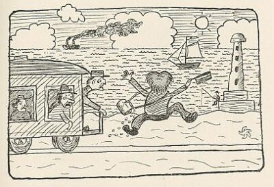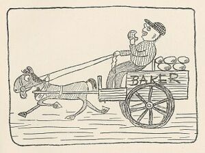 Riding in a rattle-cart that jogs and jolts and shakes,