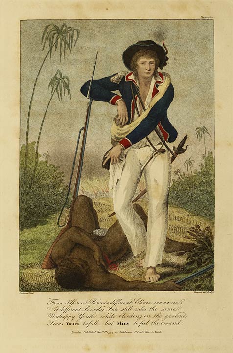 Here, in the different characters of a Commander—a Rebel Negro—a Planter, and a Slave—not only tyranny are exposed—but benevolence and humanity are unveiled to the naked eye. Here the Warrior—the Historian—the Merchant—and the Lover of Natural Philosophy, will meet with some gratification; while, for having introduced my private adventures, I must make some apology—but none for those of the lovely Slave, who makes not the least interesting figure in these pages—as female virtue in distress, especially when accompanied with youth and beauty, must ever claim protection.