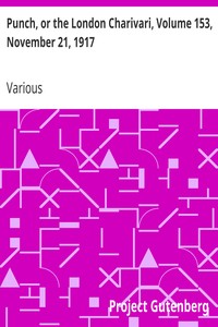 "Punch, or the London Charivari, Volume 153, November 21, 1917" by Various is a historical periodical magazine published during the early 20th century. This collection represents a satirical commentary on British society and politics amid the backdrop of World War I, capturing the humor and concerns of the time through witty illustrations and clever prose. As a critical reflection of contemporary events, the volume offers insights into the social dynamics and public