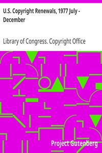 "U.S. Copyright Renewals, 1977 July - December" is a compilation of copyright entries related to various works, likely produced in the late 20th century. This reference publication includes details of renewals for a wide array of creative works, spanning literature, music, and visual arts. The content aims to provide information about the copyright status of these works, serving as a resource for researchers, scholars, and enthusiasts interested in understanding the landscape of