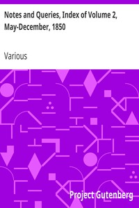 "Notes and Queries: Index of Volume 2, May-December, 1850" by Various is a historical reference work created in the mid-19th century. This collection serves as a repository of inquiries, notes, and queries relevant to a wide array of subjects including literature, history, genealogy, and antiquities, reflecting the interests and intellectual pursuits of the time. At the start of the text, the reader is presented with the index to the second volume which