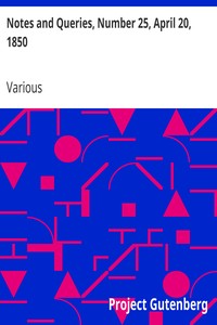 "Notes and Queries, Number 25, April 20, 1850" by Various is a historical periodical published during the mid-19th century, specifically within the Victorian era. This publication serves as a medium for literary men, artists, antiquaries, and genealogists to exchange knowledge, address historical inquiries, and share insights on various topics of interest. The likely primary focus of this issue is to engage in discussions and queries about literature, history, and folklore. In this