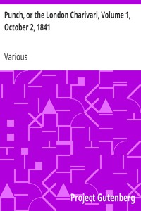 "Punch, or the London Charivari, Volume 1, October 2, 1841" by Various is a satirical publication produced during the early Victorian era. This book is a collection of humorous illustrations and written pieces that satirize various aspects of society, politics, and culture in 19th-century London. It addresses contemporary issues and social dynamics prevalent during that time, reflecting the period's wit and humor. The content of this volume showcases a wide range of