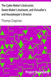 "The Cyder-Maker's Instructor, Sweet-Maker's Assistant, and Victualler's and Housekeeper's Director" by Thomas Chapman is a comprehensive guide on the production and management of various fermented beverages, written during the mid-18th century. This instructional book, likely published in the 1760s, provides insights into the craft of making cyder, raisin wines, and malty beverages like beer and ale, offering practical instructions based on the author's extensive experience in the field. The book aims to