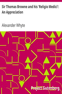 "Sir Thomas Browne and his 'Religio Medici': An Appreciation" by Alexander Whyte is a literary appreciation and analysis of Sir Thomas Browne's pivotal work, "Religio Medici," written in the late 19th century. This book not only celebrates Browne's contributions to literature and philosophy but also contextualizes his life within the scientific and religious milieu of his time. It explores themes of faith, nature, and the complexity of human existence, offering insights into
