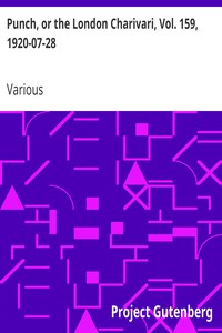 "Punch, or the London Charivari, Vol. 159, 1920-07-28" by Various is a satirical collection published in the early 20th century, specifically during the 1920s. This volume of "Punch," a long-running British weekly magazine known for its humor and political commentary, presents a series of humorous articles, illustrations, and cartoons that reflect the social, political, and cultural issues of the time. The likely topics covered include contemporary events, societal norms, and absurdities, all