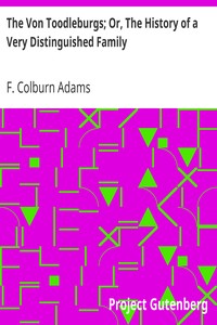 "The Von Toodleburgs; Or, The History of a Very Distinguished Family" by F. Colburn Adams is a fictional novel written in the late 19th century. The story revolves around the Toodleburg family, particularly focusing on Hanz Toodleburg, his wife Angeline, and their son Titus Bright. The narrative captures themes of family, societal change, and the contrast between aspiring ambitions and humble origins. The opening of the novel introduces us to Hanz Toodleburg,