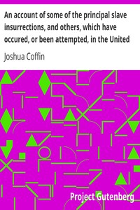 "An account of some of the principal slave insurrections, and others, which have occurred, or been attempted, in the United States and elsewhere, during the last two centuries" by Joshua Coffin is a historical account written in the mid-19th century. It presents an extensive examination of slave uprisings, primarily in the United States, over the previous two hundred years and discusses the socio-political implications of slavery and insurrections. The book is intended