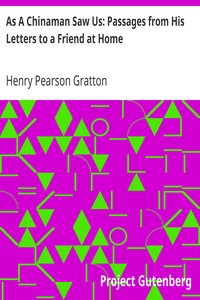 "As A Chinaman Saw Us: Passages from His Letters to a Friend at Home" by Gratton is a collection of letters written in the early 20th century. The author, a cultivated and educated Chinaman, shares his observations and experiences during a decade spent in America, addressing various aspects of American life, culture, and society from his unique perspective. This remarkable commentary not only provides insight into the quirks and contradictions of American