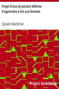 and mothers. In the text, Maréchal lays out a series of absurd and exaggerated arguments to support the notion that women should remain ignorant, emphasizing traditional domestic duties over intellectual pursuits. He suggests that learning to read would lead women to become liberated and rebellious, and he details various historical and cultural examples to reinforce his points. The proposed law is filled with ironic observations and critiques of contemporary society's views on women's education, ultimately serving as a commentary on the absurdities of gender norms and expectations of the time. (This is an automatically generated summary.)