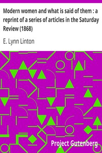 "Modern Women and What is Said of Them" by E. Lynn Linton is a collection of essays written in the mid-19th century. The work addresses the evolving roles and perceptions of women in society, critiquing contemporary behaviors and societal norms surrounding femininity. It offers a critical examination of what the author sees as the decline of the ideal woman, contrasting past ideals with what she terms "the girl of the period." The