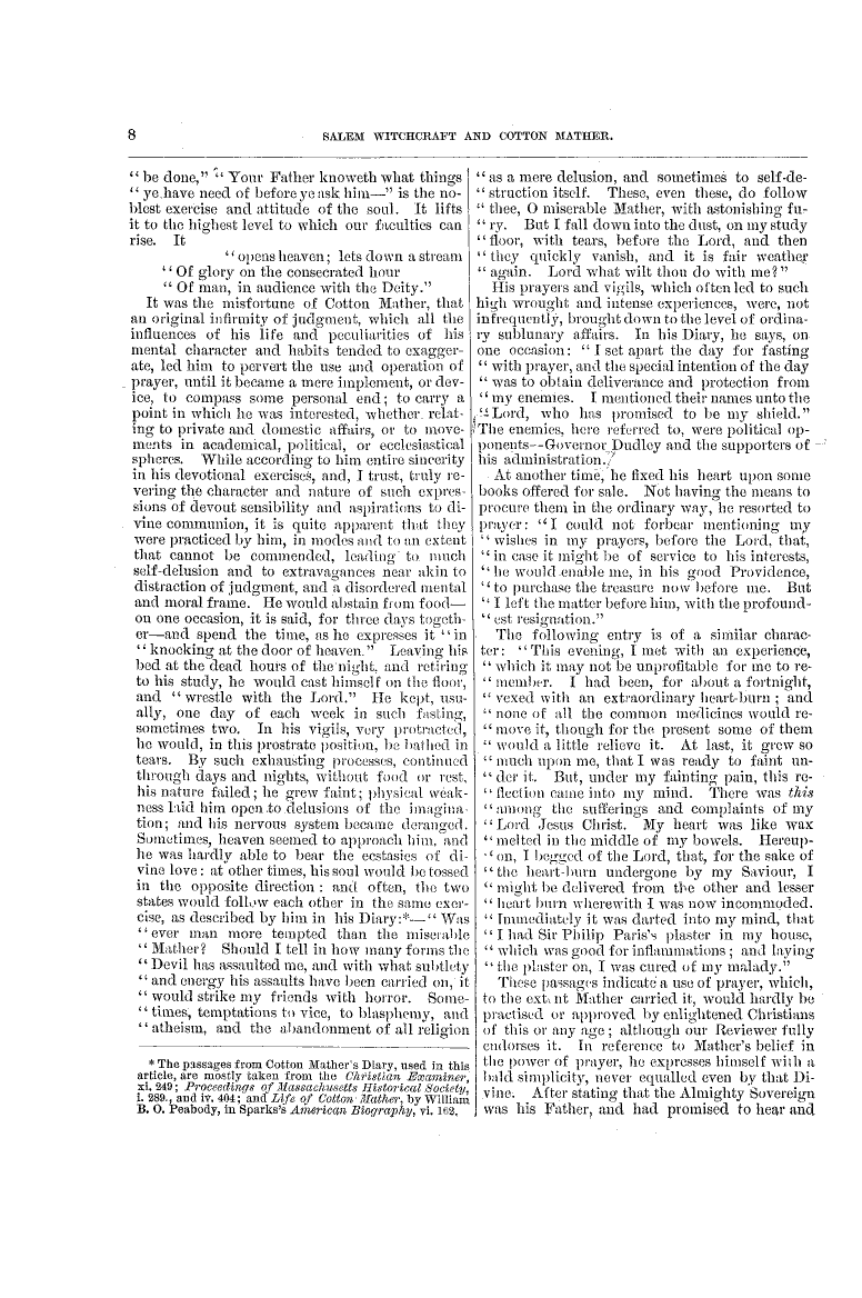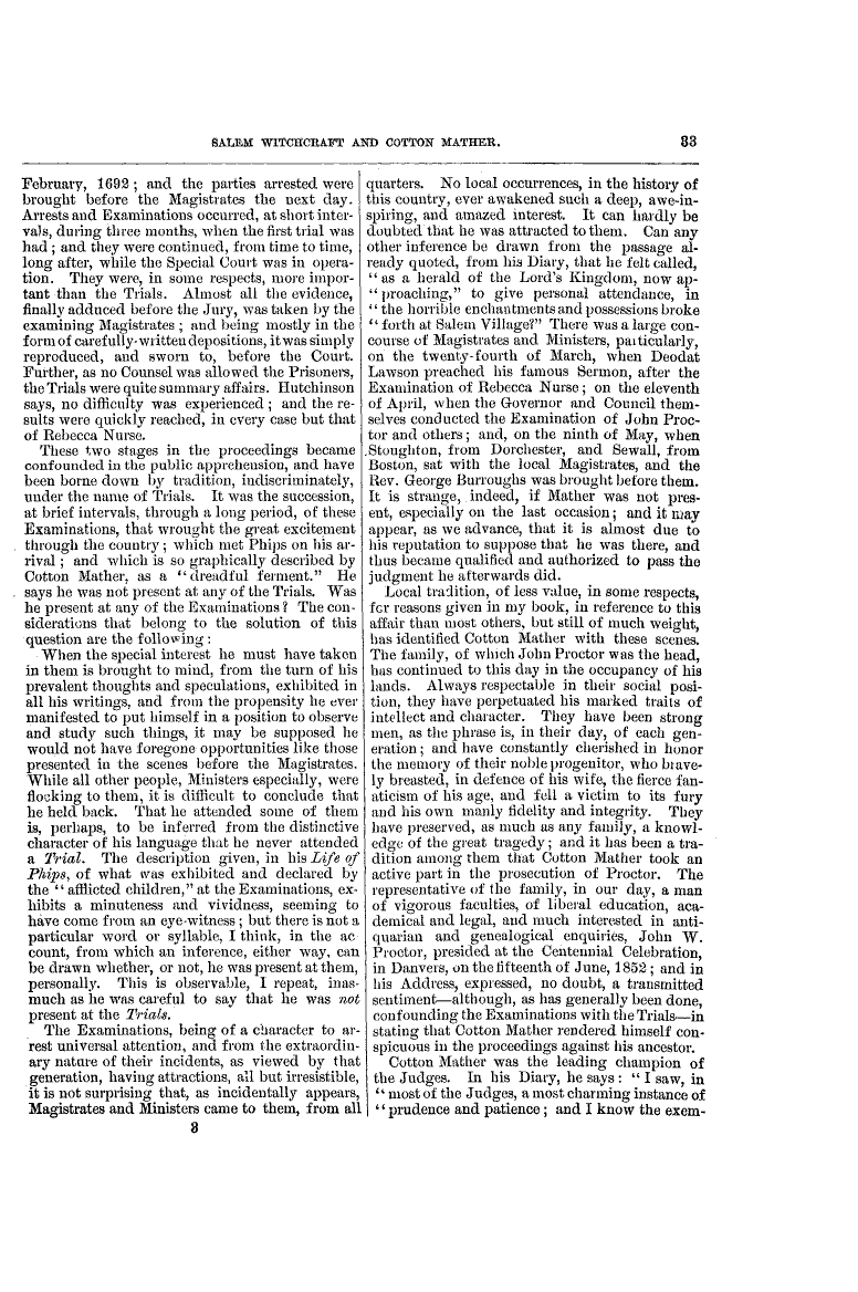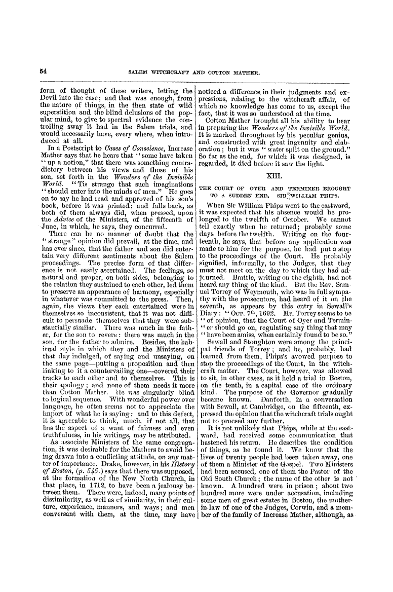 of historical perspectives and the implications of the Mathers' actions during this infamous period. The opening of this work sets the stage by recounting the catalyst for Upham's reply: a critical article published in the "North American Review" that challenged his previous writings on the Salem Witch Trials. Upham expresses the necessity of addressing historical inaccuracies related to Cotton Mather’s involvement in the witchcraft proceedings, asserting the need for clarity on the subject given the significance of the Witchcraft Delusion in America’s early history. He discusses the state of belief during the period, the influence of the Mathers on public superstition, and the societal conditions that contributed to the tragedy. Overall, the beginning establishes a foundation for Upham’s exploration of the intertwined narratives of witchcraft, religion, and historical memory, as he seeks to clarify the complexities behind one of America’s darkest episodes. (This is an automatically generated summary.)