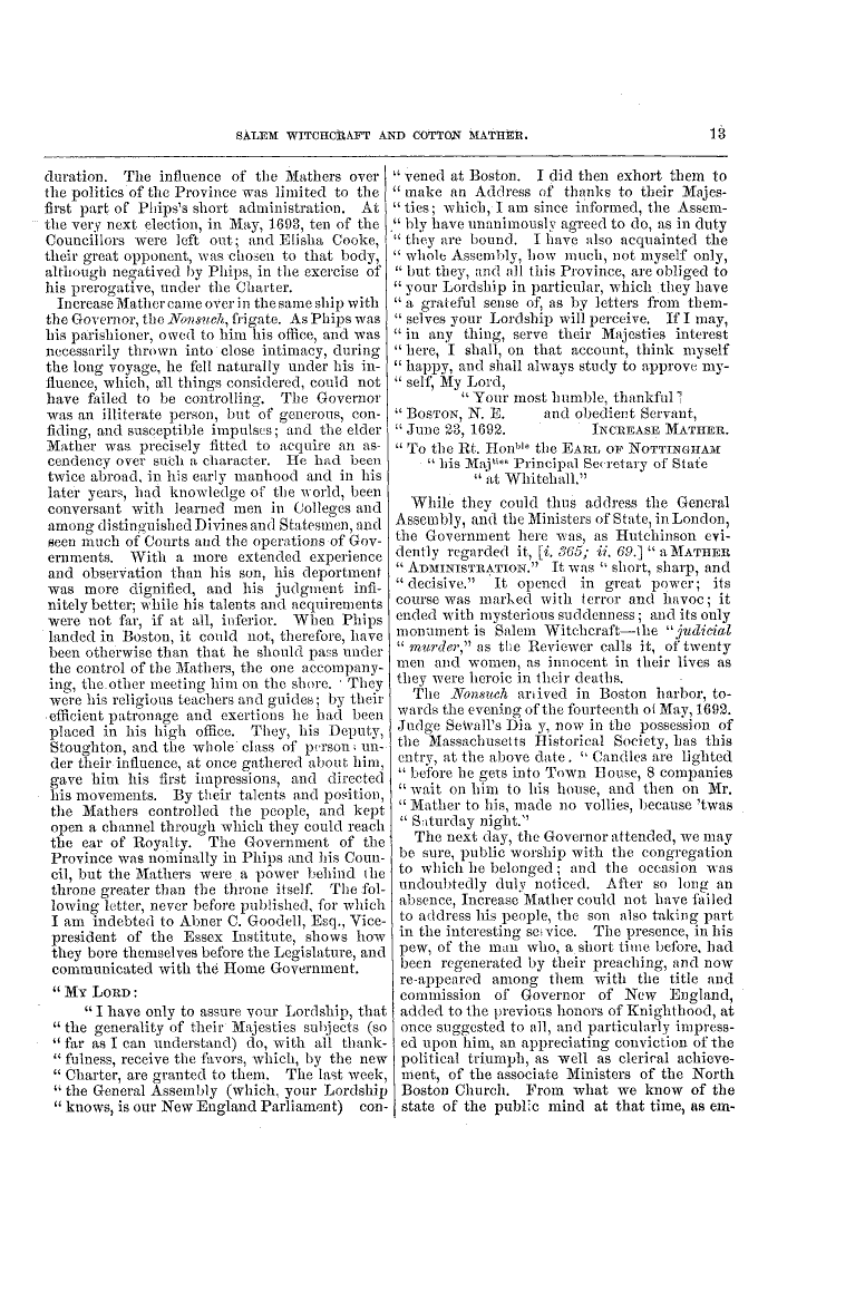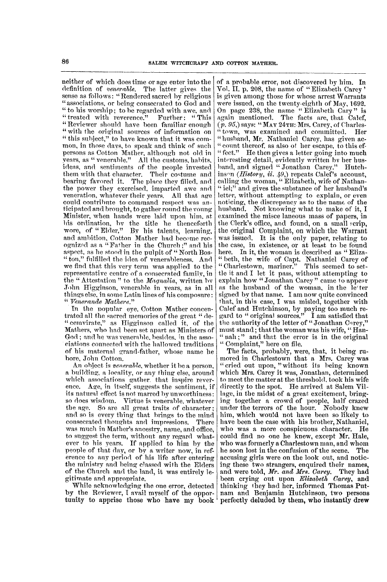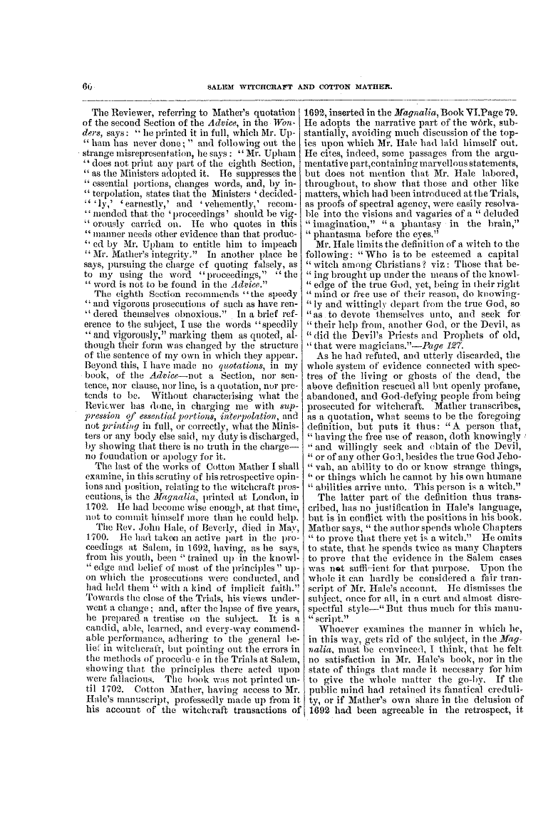 | Title | Salem Witchcraft and Cotton Mather: A Reply |