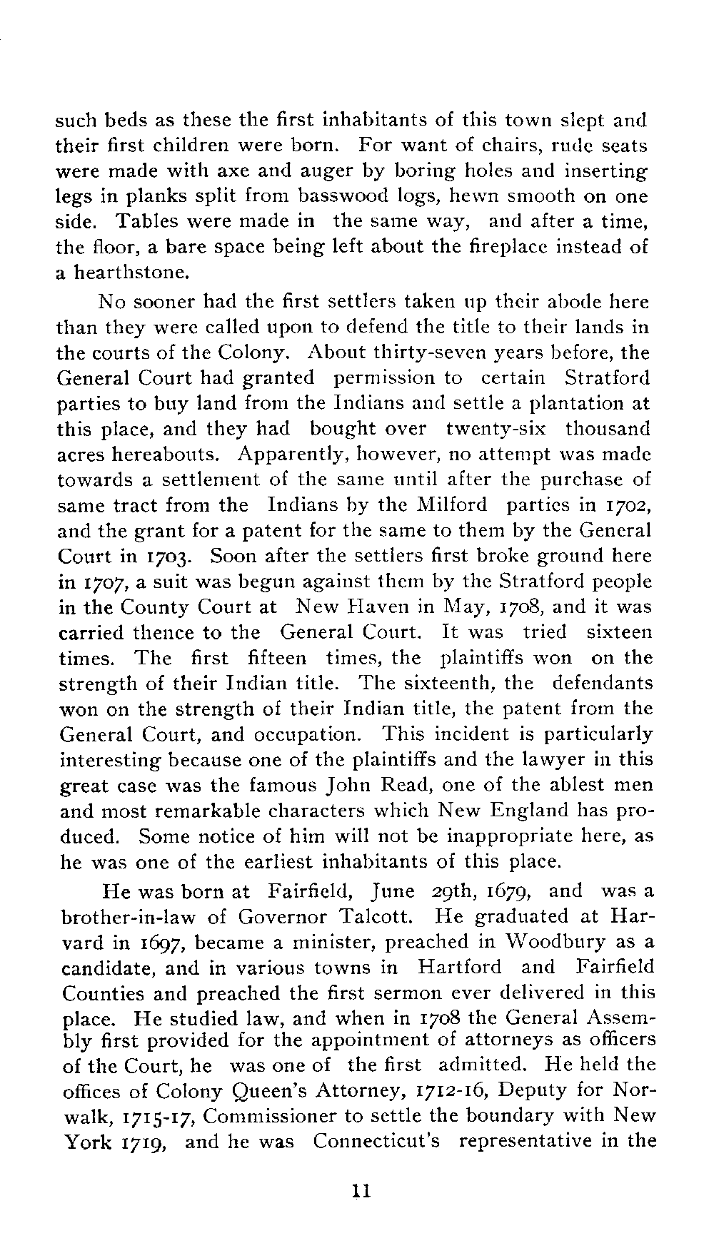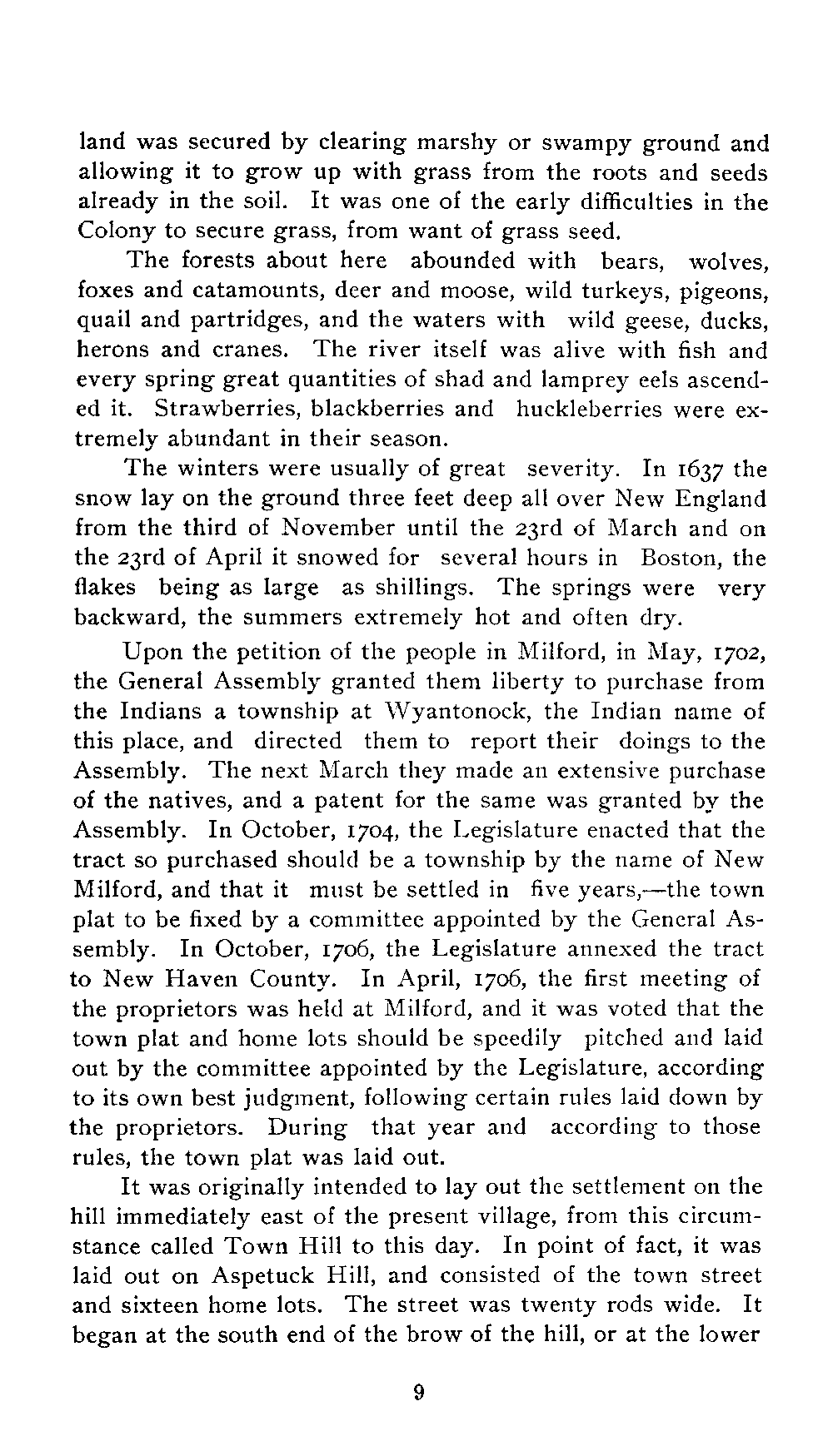 his address, Daniel Davenport provides a detailed narrative of the founding of New Milford, discussing the motivations behind the settlement and the difficulties settlers faced, including the threat of Native American attacks and the hardships of frontier living. He captures the spirit of the early settlers who, spurred by the allure of new opportunities and the pressing need for land, ventured into a formidable wilderness. Davenport also details their social structures, religious beliefs, agricultural practices, and the legal challenges they encountered in securing their land. Through personal anecdotes and historical references, the address offers a vivid portrait of life in early 18th-century New England, emphasizing the resilience, community spirit, and moral character of the settlers. (This is an automatically generated summary.)
