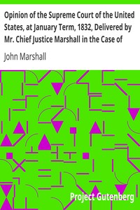 "Opinion of the Supreme Court of the United States, at January Term, 1832, delivered by Mr. Chief Justice Marshall" is a legal document detailing a pivotal case decided by the U.S. Supreme Court during the early 19th century. This book falls under the category of legal publication and addresses the principles of jurisdiction and sovereignty concerning Native American tribes and state authority. The text is rooted in the historical context of the