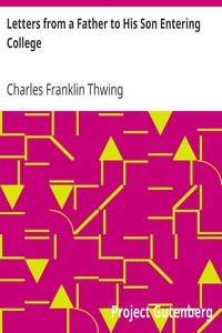"Letters from a Father to His Son Entering College" by Charles Franklin Thwing is a collection of reflective and advisory letters written during the early 20th century. The book addresses the pivotal experiences and expectations faced by young men as they transition into college life, emphasizing personal development, intellectual growth, and moral character. Thwing, who served as the president of Western Reserve University, shares insights that many fathers might wish to convey