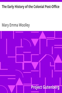 "The Early History of the Colonial Post-Office" by Mary Emma Woolley is a historical account written in the late 19th century. The book explores the development of postal services in the American colonies, detailing the evolution of communication methods and the establishment of an organized postal system. Woolley examines how the lack of a formal postal service impacted communication among settlers and the measures taken to address this issue. In this comprehensive