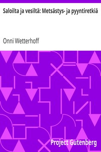 "Saloilta ja vesiltä: Metsästys- ja pyyntiretkiä" by Onni Wetterhoff is a collection of hunting and fishing stories written in the late 19th century. The work features detailed accounts of various hunting expeditions and experiences in the Finnish wilderness, particularly focusing on the legendary hunter Eero Juhani Heinäkangas and his essential encounters with bears, wolves, and other game. The narratives encapsulate the essence of hunting culture and practices during that era, making it
