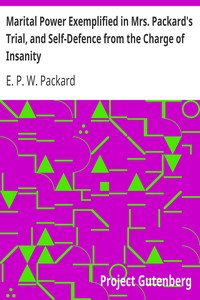 "Marital Power Exemplified in Mrs. Packard's Trial, and Self-Defence from the Charge of Insanity" by Mrs. E. P. W. Packard is a historical account likely written in the late 19th century. The narrative revolves around Mrs. Packard's harrowing experience of being accused of insanity by her husband, Reverend Theophilus Packard, following a disagreement over religious beliefs, which leads to her forced confinement in an asylum. The text serves as both a personal
