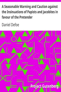 "A Seasonable Warning and Caution against the Insinuations of Papists and Jacobites in Favour of the Pretender" by Daniel Defoe is a political pamphlet written in the early 18th century, specifically around the time of the Jacobite risings. This work serves as a fervent appeal to the English people to remain steadfast in their Protestant beliefs and resist the allure of Catholicism and the restoration of the Stuart monarchy. The pamphlet critiques