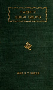 "Twenty Quick Soups" by S. T. Rorer is a culinary guidebook written in the late 19th century. The book is a collection of soup recipes, offering a variety of quick and accessible options for home cooks. It aims to simplify the process of making flavorful soups, providing practical instructions and clever variations. The content of the book features twenty distinct soup recipes, each detailing ingredients and a step-by-step preparation process. These recipes