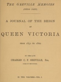 The Greville Memoirs, Part 3 (of 3), Volume 1 (of 2) A Journal of the Reign of Queen Victoria from 1852 to 1860 |