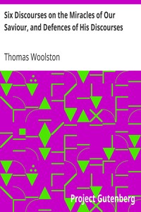 "Six Discourses on the Miracles of Our Saviour, and Defences of His Discourses" by Thomas Woolston is a theological treatise written in the early 18th century. The work delves into the nature of the miracles attributed to Jesus, arguing against their literal interpretation and instead promoting an allegorical understanding. Woolston critiques the traditional views held by the clergy of his time regarding the miraculous events in the New Testament, positioning himself within
