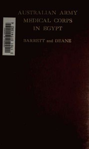"The Australian Army Medical Corps in Egypt" by Sir James W. Barrett and P. E. Deane is a historical account written in the early 20th century. The book provides an illustrated and detailed narrative of the early organization and operations of the Australian Medical units in Egypt during the First World War, particularly in the years 1914-1915. It focuses on the medical service's response to the outbreak of war and the consequent