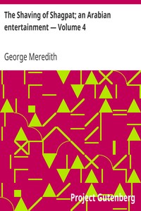 "The Shaving of Shagpat; an Arabian entertainment — Volume 4" by George Meredith is a fantasy novel published in 1856. Written in the style of the Arabian Nights, this humorous oriental romance follows Shibli Bagarag, a Persian barber, and Noorna, an enchantress, on their quest to shave the tyrant Shagpat, whose magical hair enslaves an entire city. Their journey involves magic swords, talking hawks, genies, and enchanted palaces. Praised by George Eliot
