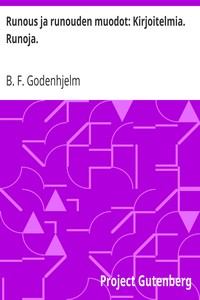 "Runous ja runouden muodot: Kirjoitelmia. Runoja." by B. F. Godenhjelm is a scholarly work on poetry and its various forms written in the early 20th century. The text appears to focus on the theoretical and aesthetic aspects of poetry, exploring its role in societal and cultural contexts while also analyzing specific examples. The author, who was a significant figure in Finnish literature and education, likely draws upon classical influences as well as